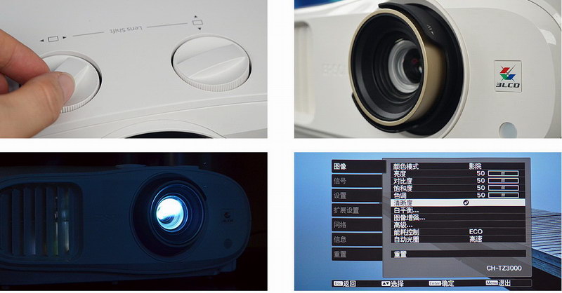 CH-TZ3000配備1.6倍變焦鏡頭,并可24%水平位移與60%垂直位移,安裝與調試更方便。愛普生特別設計的主界面讓各種功能一目了然,功能界面很豐富;遙控器手感舒適,按鍵功能一應俱全,還有按鍵燈,在全黑環境中操作更方便。