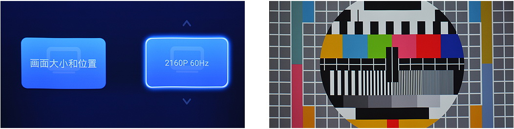 用HDMI接線連接CH-TZ3000與播放器,我們看到CH-TZ3000支持4K 60Hz信號源顯示,通過專業測試圖,我們看到CH-TZ3000畫面細節豐富,色彩艷麗,暗部沉穩,光線細膩。