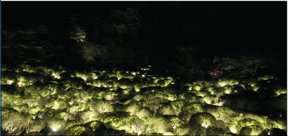 在白日里并不起眼的巨石,到了夜晚變得繽紛奪目,花朵永遠(yuǎn)的重復(fù)著盛開然后散落的過程。