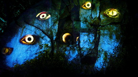 這些裝置作品可以通過隱藏的紅外感應(yīng)攝像頭來探測人的肢體動作,并同時發(fā)送到電腦后臺數(shù)據(jù)庫,使得投影儀的畫面可以根據(jù)觀眾的動作來改變作品本身的呈現(xiàn)方式。