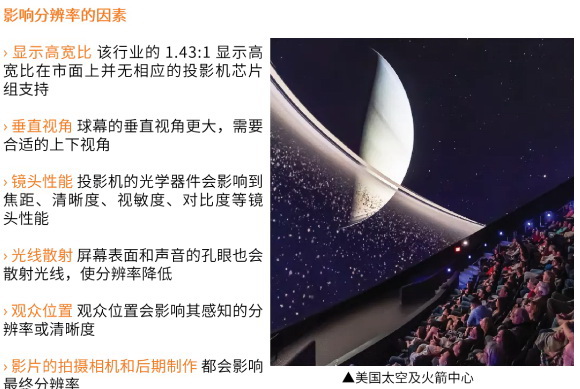僅使用“4K 分辨率”來定義巨幕/球幕影院性能似乎過于片面。因?yàn)樗雎粤擞绊懽罱K分辨率的其他因素,也忽略了不同觀眾對(duì)圖像質(zhì)量的感知。