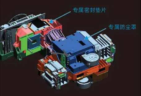 Beverly系列光學引擎達成IP5X級高密度防塵,全密閉色輪防塵設計,全金屬密封艙,高傳導效率,配置專屬的防塵罩,進行全面防塵阻隔,專屬密封墊片強化連接防塵阻隔,有效防止灰塵進入。