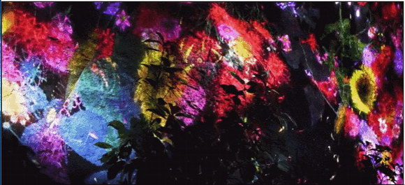 在白日里并不起眼的巨石,到了夜晚變得繽紛奪目,花朵永遠的重復著盛開然后散落的過程。