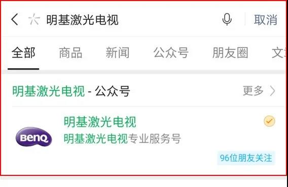 【第一步】打開微信,搜索:明基激光電視