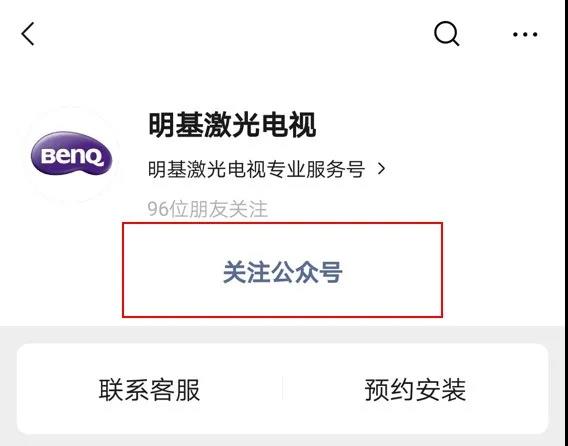 已購明基激光電視的客戶請注意!不用再打電話溝通半天,關注明基激光電視官方公眾號,微信預約廠家上門安裝非常簡單,按以下四步操作即可: