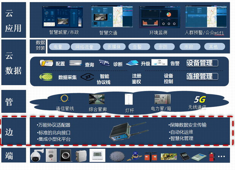 洲明智慧桿一體化解決方案以洲明智慧桿為載體,具備5G微基站、智能調(diào)光、RGB氛圍燈、WiFi熱點(diǎn)、信息查詢、一鍵求助、環(huán)境監(jiān)測、RFID、視頻播放、安防監(jiān)控、USB充電、新能源汽車充電12種功能應(yīng)用,通過自研智慧桿綜合管理平臺,可實現(xiàn)各類數(shù)據(jù)的實時采集、傳輸與分析,從而為智慧城市數(shù)字化管理以及建設(shè)5G智慧城市奠定重要基礎(chǔ)。