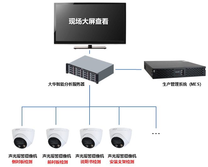 通過大華自研AI智能識別技術在產(chǎn)線上搭建智能識別系統(tǒng),搭載基于家電行業(yè)包裝附件齊套智能檢測算法,聯(lián)動生產(chǎn)管理系統(tǒng)(MES)下發(fā)檢測要求,可實時高效識別錯放、漏放等失誤。