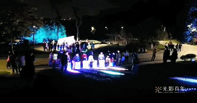 游客們跳躍起,踩踏地面琴鍵上,引領流光,