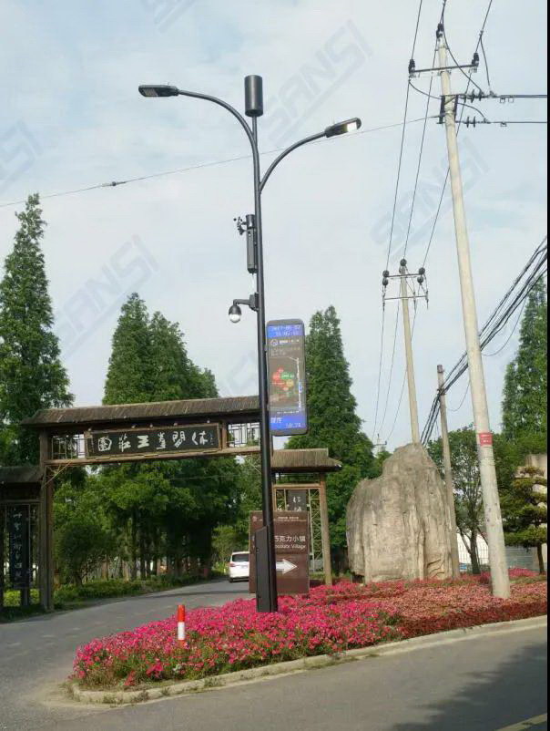 上海三思以打造“美麗鄉村”為基礎,秉承新農村建設理念,采用智慧路燈系統,并將這一系統作為景區室外信息采集、信息發布、信息傳輸的載體,集成了公共WiFi、視頻監控、公共廣播、溫度監測、濕度監測、風速監測、空氣質量監測、緊急呼叫、信息發布等功能。
