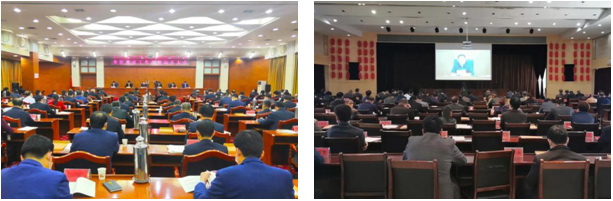在臨淄區行政辦公中心的主會場內,白平和書記通過華平的視頻會議系統向現場和13個分會場的與會人員發表講話、傳遞會議精神。