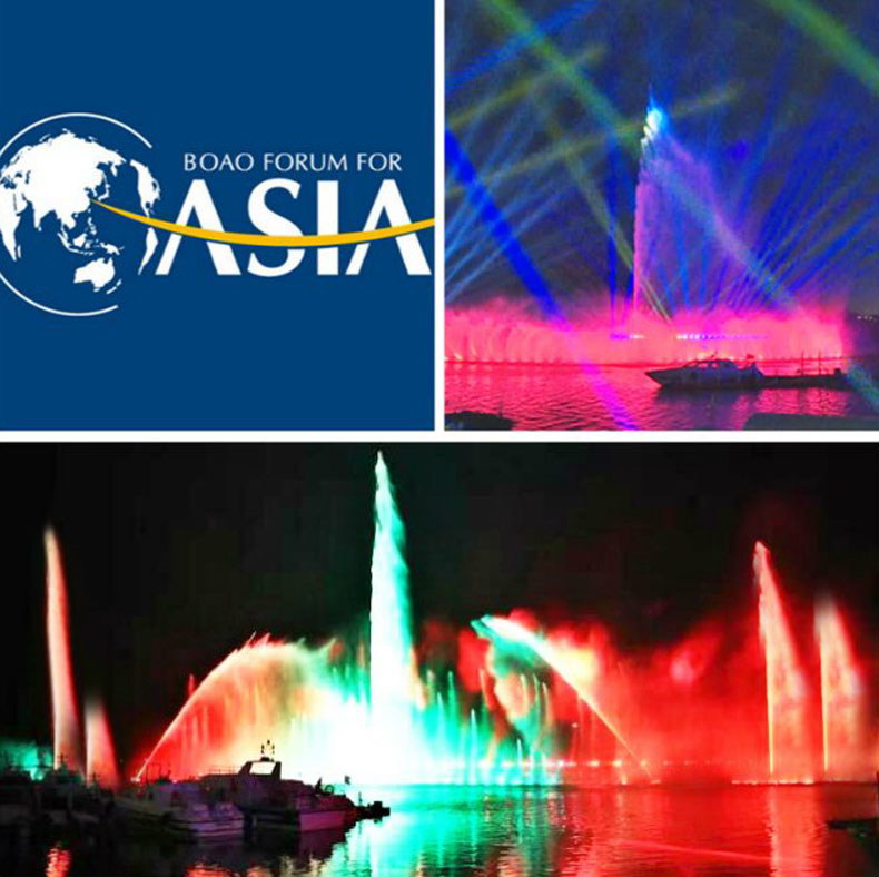 4月8日至11日,博鰲亞洲論壇2018年年會在海南博鰲舉行,為了以襄盛事,本屆博鰲論壇的燈光秀項目以博鰲故事為主題,在1500平的水幕上,采用8臺25000投影機和8臺激光機,運用花式噴泉、舞臺音樂燈光等多元投影呈像的技術,用民眾最喜聞樂見的流光幻彩,講述了“魅力南海、博鰲神話、海上絲路、新的發展”四大華章,傾情演繹出一場直擊靈魂和感官的情懷光影大片。