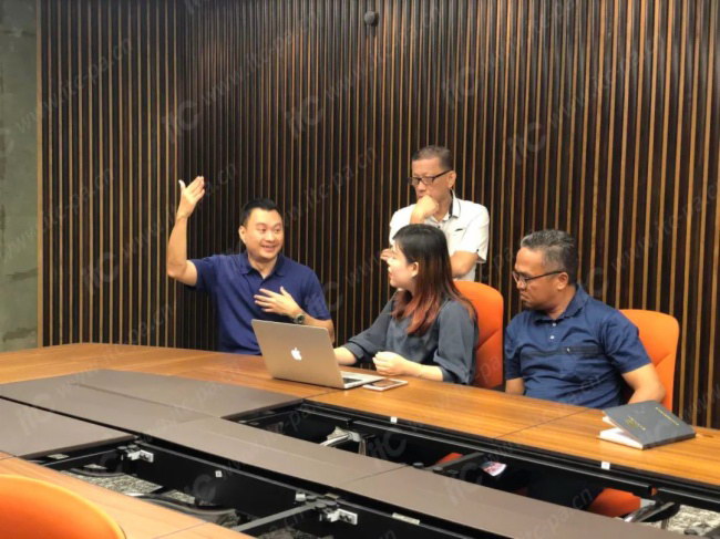 SUNDA大廈10樓高端豪華的董事會會議室需要安裝一個大面積顯示屏,實現4K視頻和會議期間的高清畫面播放。itc駐外團隊了解客戶需求后,初步進行了室內LED視頻墻像素的整體設計,包括P1.667、P1.56、P1.25等間距規格供客戶選擇。