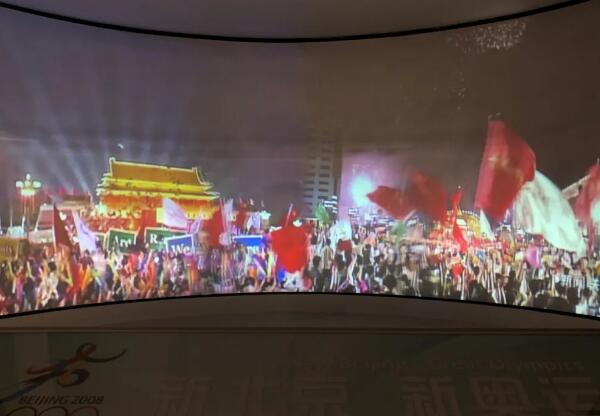 三臺明基BenQ工程投影機融合投影打造高清環幕,講述08年北京奧運故事。異形投影本身不易實現,融合投影也具有技術難度,明基工程投影機卻能靈活安裝于場內,集兩者于一身打造沉浸式巨幕,美輪美奐如臨其境。