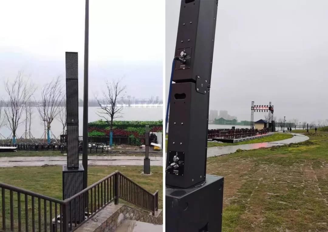 該演出音頻設備由銳豐智能江蘇營銷中心提供,現場采用了銳豐智能"RF"—VT線陣列揚聲器、VR線陣列揚聲器作為主擴聲,SL系列線聲源音柱音箱為輔助補聲、以及周邊設備等產品。