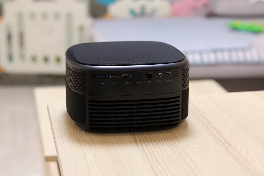 背面有著豐富的接口,從左到右分別為:2個USB接口、HDMI接口、S/PDIF接口、網線接口、電源接口以及電源按鍵。用戶可以拓展連接游戲主機、KTV設備、4K畫面傳輸、音響設備、鍵盤鼠標等,滿足家庭多元化娛樂需求。