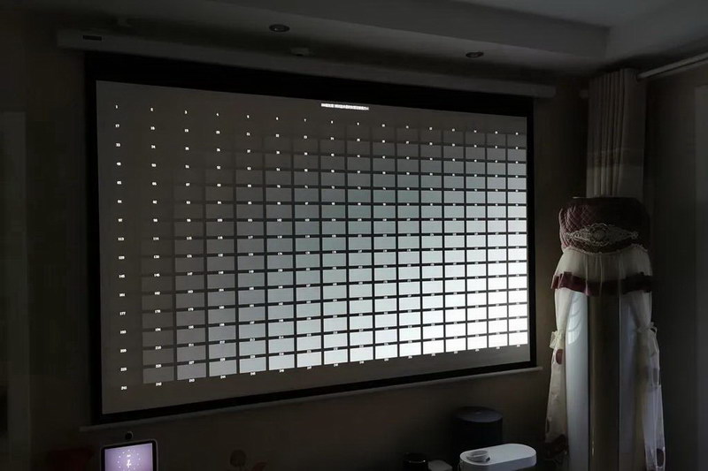 接下來是分辨率和對比度。如果投影儀的分辨率不高,投出來的畫面效果會很差,回想一下上學時老師放PPT的畫面就知道了。堅果V10具備了1080p (1080*1920) 物理分辨率,兼容4K,下面的實拍圖可以看到其投射樣張畫面的灰度變化非常清晰。