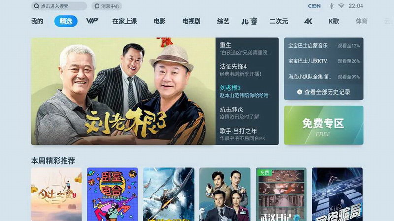 堅果V10搭載智能操作系統,界面簡潔舒適,操作簡單流暢,內含海量影視資源,包括電視劇、電影、教育、兒童、綜藝、體育等,你可以輕松找到想看的內容。