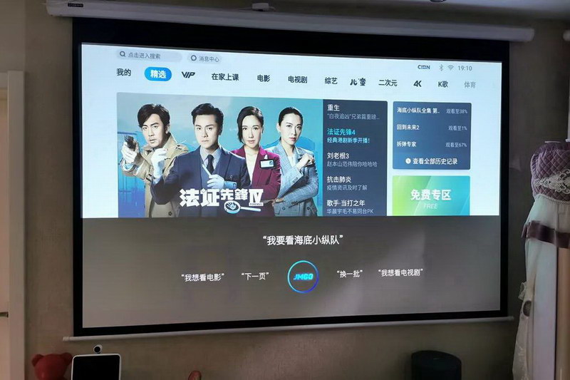 通過幾張實拍圖片,可以看到堅果V10投射的畫面清晰不失明亮,在畫面色彩過渡和渲染效果上都表現不錯,畫面色彩的精度以及還原度顯得很自然,可充分滿足用戶的日常觀影需求。