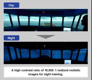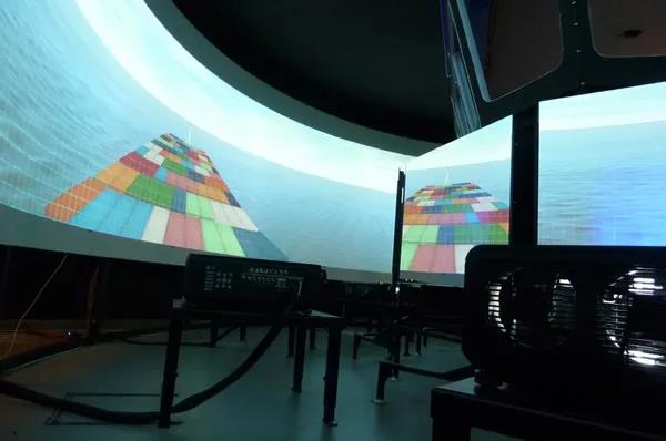 康斯伯格海事提供的培訓軟件——艦橋模擬器軟件是用來培訓學生如何操作大型商船的軟件。該軟件由培訓模擬器的領先供應商/系統集成商康斯伯格海事提供。之前的艦橋模擬器使用的是XGA短焦投影機,而更新的投影系統采用7臺PT-DZ870 WUXGA 1DLP™投影機,提高了分辨率、增加了色彩,并改善了安裝的便利性。