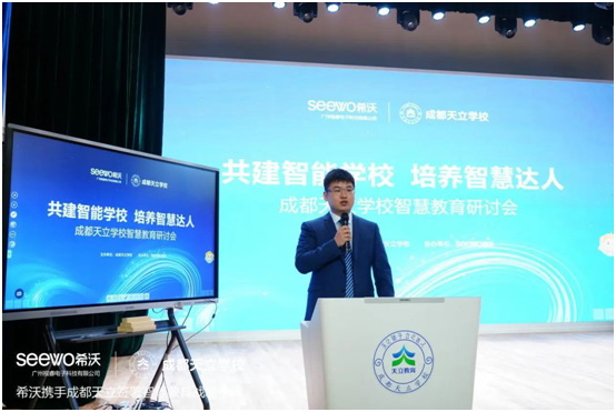 “希沃(seewo)是視睿科技在教育領(lǐng)域的自主品牌,隸屬于以顯控技術(shù)為核心的智能交互解決方案服務(wù)商視源股份(股票代碼002841),總部位于廣州科學(xué)城。作為教育信息化應(yīng)用工具提供商,希沃始終堅(jiān)持以‘用戶為核心’,為支持天立教育未來(lái)教育發(fā)展,大力推動(dòng)未來(lái)教育產(chǎn)品應(yīng)用與教學(xué)深度融合,充分發(fā)揮優(yōu)秀教師的教學(xué)才能,實(shí)現(xiàn)教育信息化產(chǎn)品的普及和高效應(yīng)用。共同開(kāi)展‘學(xué)校+企業(yè)’合作模式,深化教育信息產(chǎn)品的實(shí)際應(yīng)用,融合教學(xué)創(chuàng)新。”希沃四川區(qū)域總經(jīng)理郎驍在會(huì)上介紹到。