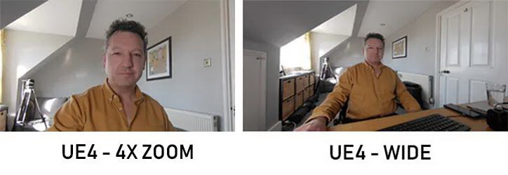 AW-UE4搭載一個(gè)具有111度視野的超廣角鏡頭。這意味著將它擺在我辦公室的桌子上,鏡頭視野就足以覆蓋整個(gè)房間。4倍數(shù)字變焦功能,允許將鏡頭拉近對(duì)被攝者的頭部進(jìn)行拍攝(這樣一來(lái)能巧妙地把角落那堆卷紙和腌牛肉給移除鏡頭之外,避免尷尬時(shí)刻)。