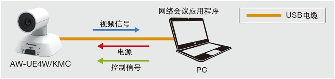(1)AW-UE4通過(guò)USB Type-C接口連接上Skype,Zoom,Teams等音視頻軟件或者任意標(biāo)準(zhǔn)網(wǎng)絡(luò)攝像頭后,可通過(guò)USB電纜實(shí)現(xiàn)視頻和音頻輸出,做高畫(huà)質(zhì)網(wǎng)絡(luò)攝像機(jī)之用。