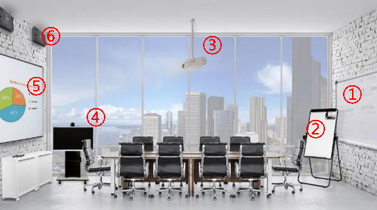 傳統多媒體會議室,顯示端有(LED、LCD大屏、投影機投影幕、輔助顯示電視等)、視頻會議、白板書寫、會議擴聲、中控系統、控制平板等,繁瑣束縛,受物理空間限制,團隊協作低效。