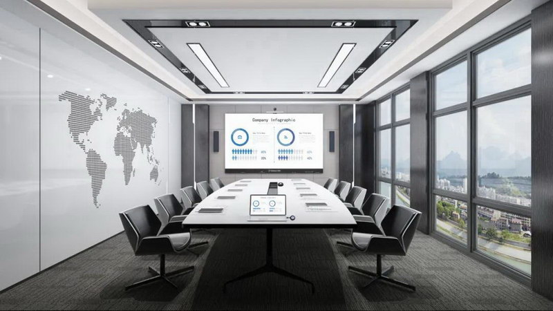 DANACOID LED智慧會議屏的出現,打破了傳統LCD屏幕無法實現超大尺寸,對比度相對較低,色域相對較窄,使用壽命有限的壁壘,解決了硬件配置單一功效的思維邏輯,集無線投屏、多系統接入、會議擴聲、智能環境控制等功能于一體,并融合了音視頻信號處理于其中,更可響應客戶的個性化定制化需求,一臺設備即可實現全場景、全功能,開啟會議室解決方案新時代。