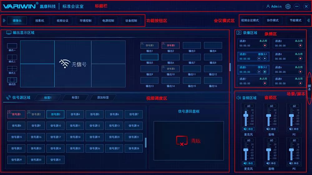 腳本功能,該功能的本質是一個自動化的會前準備過程。它可以記錄會議操作信息,然后存儲,到預訂的時間,用戶直接進行調出使用即可。