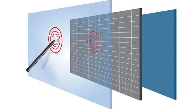電磁:依靠電磁筆和感應器在操作過程中產生的磁場變化來進行判別,電磁筆為訊號發射端(transceiver),天線板為訊號接收端(receiver),當接近感應時磁通量發生變化,繼而運算定義位置點。