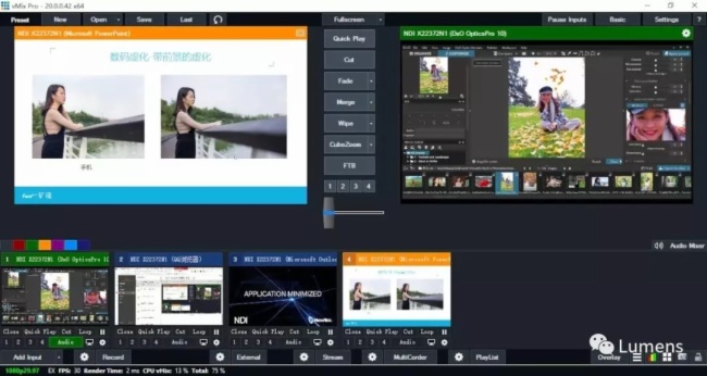 方案中,將PPT源、瀏覽器源等,統一轉成NDI信號源,在vMix的NDI源中,你將可以獲取同網段中的所有NDI®信號源。