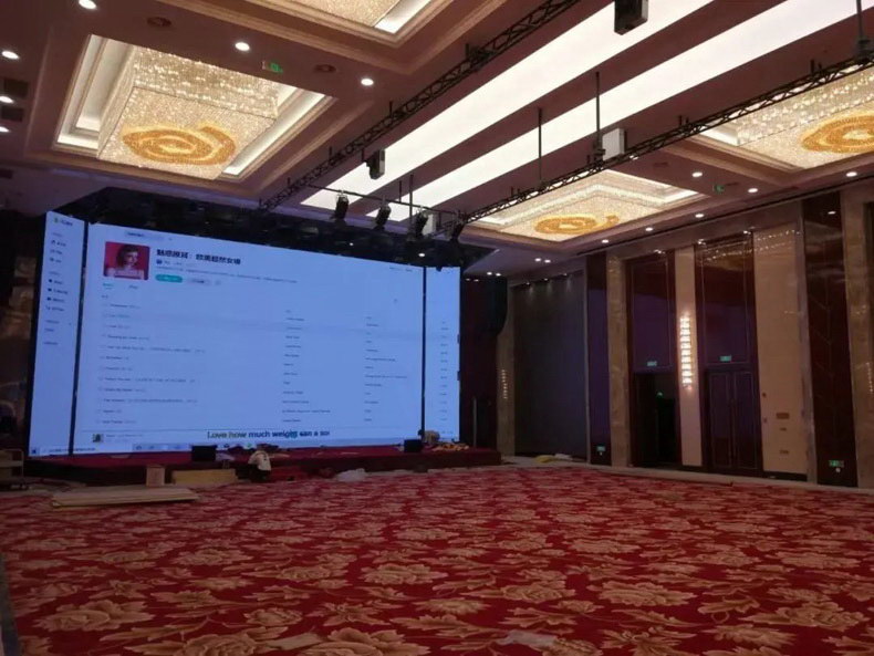 為了宴會廳效果能夠達到最佳,現場設計施工團隊歷時半個多月的時間,現場搭建時反復研究,從不同角度、不同方位設計制作影像,通過測試、對位、矯正乃至重新輸出,呈現出現場表演的完整統一,構成一個立體可觀的5D全息宴會廳。