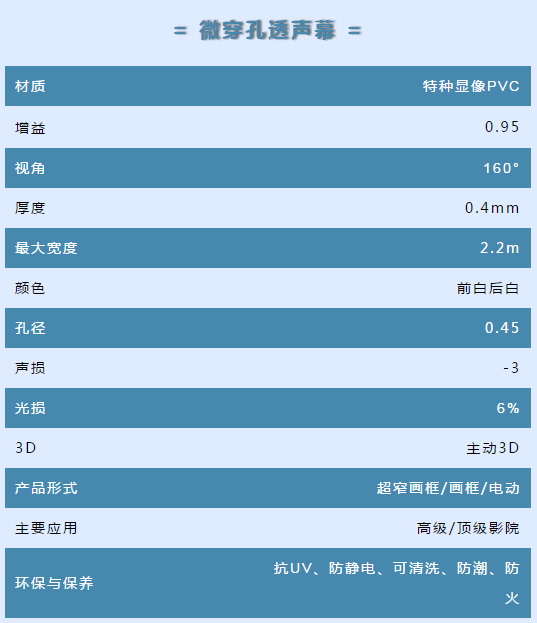 幕料采用了進口0.45mm孔徑的頂級微孔透聲白幕,無論在光損或聲損方面都做到了極致,給人以置身于高級專業電影院的感覺,也可以一展歌喉,真正實現了把電影院、KTV搬回家的夢想。