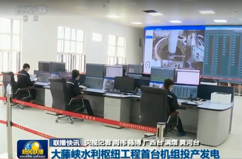 2020年4月30日,大藤峽水利樞紐工程壩區(qū)中控室大屏顯示機(jī)組由空載態(tài)變?yōu)榘l(fā)電態(tài),標(biāo)志著大藤峽水利樞紐正式開始發(fā)電,意味著離圓夢百年的目標(biāo)更近了一步。