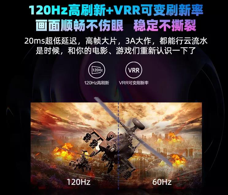 海信游戲電視采用120Hz超高刷新率面板,擁有廣色域技術和高性能畫質芯片,支持HDR10和VRR游戲模式,畫面穩定而流暢。海信游戲電視加載了海信自主研發的AI場景識別和智慧光感系統,可以根據外界環境光、播放場景、播放內容進行逐幀畫質調教,給玩家強烈代入感的同時保護視覺舒適度,讓游戲體驗更加盡興。