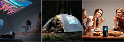 投白墻,投房頂,甚至是投帳篷,創意生活我的投影我做主。榮獲2020美國消費性電子展創新獎(CES Innovation Awards)的C250i掌上創意投影機通過十二面體在水平和垂直軸上旋轉360°,為不同角度的投影提供了自由便捷的畫面展示。當C250i橫放時,隨著螺旋切面的不同滾動,投影畫面因角度的變換可投放到地面到墻體到天花板,變化的同時自動梯形矯正,數碼小白只需考慮自己想要的場景,創意投影交給C250i吧。