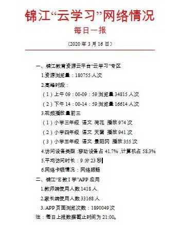 新冠疫情發(fā)生以來,錦江“云學習”模式,成為四川省“停課不停學”工作正面典型。5月29日,《 人民日報 》( 2020年05月29日 07 版)公布“科技戰(zhàn)疫——2020中國數(shù)字化轉(zhuǎn)型成功案例”,《錦江云學習服務全川學子停課不停學》入選教育服務類十大案例。