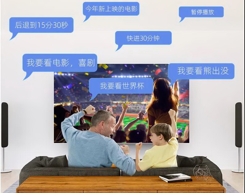 這是A3智能投影系列產品新增功能,支持藍牙語音交互,支持多輪對話式遙控,按下遙控器語音鍵就能完成更多操作,更顯智能和便捷,讓不熟悉投影的人也可以輕松上手。