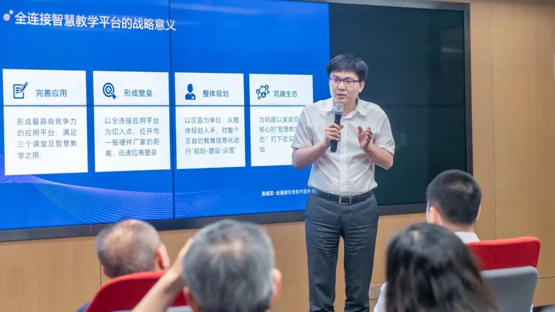 會(huì)議對全連接智慧教學(xué)方案和奧威亞轉(zhuǎn)型升級(jí)進(jìn)行了專題交流研討,指出奧威亞正在從產(chǎn)品向應(yīng)用拓展,需要在實(shí)踐中不斷完善,整合資源構(gòu)建教育新生態(tài),助力教育優(yōu)質(zhì)均衡發(fā)展。