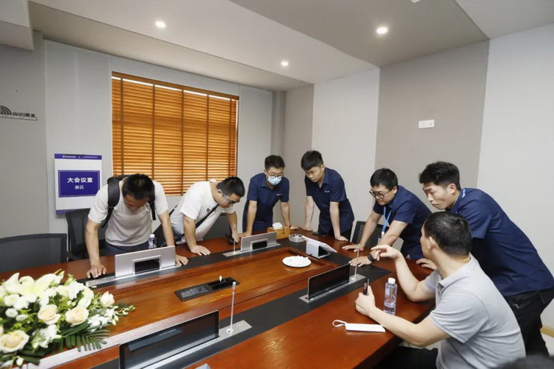 除一樓展廳,二樓還設(shè)置了升降無紙化會(huì)議室、無線無紙化會(huì)議室、靜態(tài)展示區(qū)、圓桌會(huì)議室等功能區(qū),為來賓提供了一個(gè)全場景全功能的沉浸式體驗(yàn)空間。