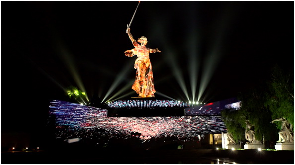 盡管今年的勝利日慶祝活動在形式上比較簡化,但成千上萬名觀眾仍然通過斯大林格勒保衛(wèi)戰(zhàn)博物館和遺址的現(xiàn)場直播參與到慶祝活動中。觀眾們期待著瞻仰一座壯麗的景觀:祖國母親在召喚這座雄偉的雕像傲然矗立在伏爾加格勒的馬馬耶夫崗上,從未顯得如此充滿活力和氣勢磅礴。