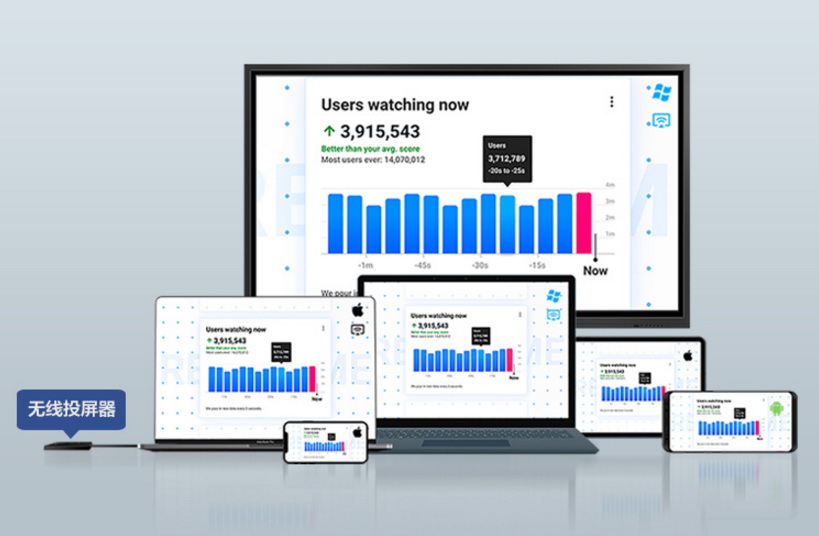 除了使用傳統的接口線纜連接外,會議用戶還可以通過選配USB無線投屏器,來適配多系統設備使用,如Windows、Mac OS系統,而安卓及iOS系統也都可以通過無線的方式,完美兼容NETRIX智能交互會議平板進行投屏展示。