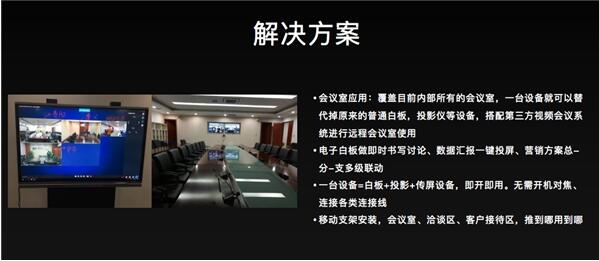 以浦發銀行貴州省分行為例,在引入MAXHUB前,每場晨夕會光設備開機、會前準備就要耗時10多分鐘,會議效率低下。視頻會議時,還要配備音響、麥克風等額外設備,需要專業技術人員進行設備維護。此外,傳統設備場景固定,一些客戶活動、小組會議無法和會議設備很好地結合。而當MAXHUB進入會議室后,一臺會議平板就兼具電子白板、投影儀、音視頻設備、音響等眾多功能,無需開機對焦、設備連線,即開即用,且能很好地兼容原有視頻會議系統進行遠程協同。同時,安裝有移動支架的會議平板可以靈活挪動到會議室、洽談區、客戶接待區等場所,大大提升了會議設備的使用效率。