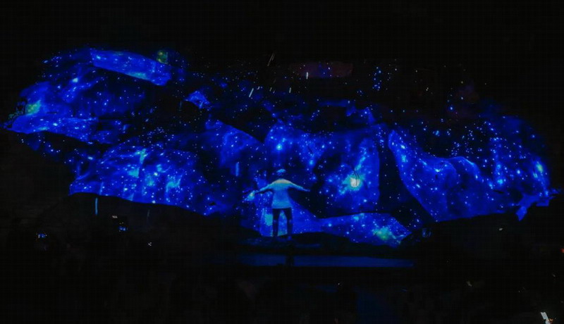 《九天玄女》采用5臺Vivitek(麗訊)激光工程投影機打造而成,其中頂部采用2臺亮度為18,000流明的DU9800Z,墻體則采用3臺亮度為12,000流明的RU81913搭配而成,通過拼接融合的方式將5D影像投射在溶洞中形狀各異的巖石上,為觀眾展現美輪美奐的視覺效果。這部世界首幕溶洞實景光影劇《九天玄女》以溶洞九個大廳九個天窗為背景,用現代光影技術全新演繹九天玄女與張家界九重愿的故事,一舉打破印象劇舞臺固定、觀眾席固定、演員陣容龐大的傳統模式,讓游客在游覽的過程中完成九幕大劇的完美體驗。