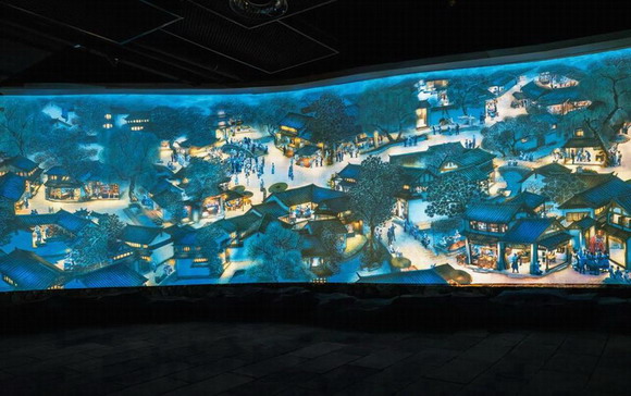 納西文化體驗館也是國內第一個大型民俗文化體驗館,館藏亞洲第一個互動數字長卷——由Vivitek(麗訊)傾情打造的長100米、高3米的納西風情畫卷,整副風情圖借助20臺Vivitek(麗訊)DU7090Z激光工程投影機,采用20通道畫面拼接融合打造而成。《納西風情圖》畫面靈動多彩、細節畢現,人物栩栩如生,形象生動地展示了納西的風土人情、傳統景致,再現了明朝最鼎盛的木府時代。
