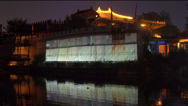 在Vivitek(麗訊)高亮度激光工程投影機的映射下,園內一座座仿宋建筑群成為了天然幕布,靈動還原千年前大宋都城的輝煌盛景。