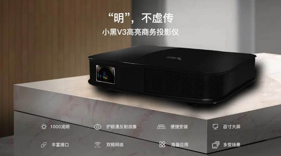 性能方面,小黑V3采用專業的處理芯片,2.4G/5G網絡連接,速度更快更流暢,按下開機鍵,你還沒準備好,我展示好。超強光源壽命,你盡管躁,我陪著你。