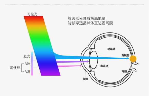 此外,液晶顯示屏使用的是藍色LED配合黃色熒光粉實現的白光背光,對人眼的傷害是很大的。因為藍光屬于波長為380-500nm的高能量可見光,能穿透角膜和晶狀體直達黃斑區,引起視網膜黃斑變性,繼而導致視力逐漸下降甚至完全喪失,特別是對于成長階段的學生來說,由于他們的眼睛結構還不穩定,對于這類產品的敏感度更高,長期使用液晶屏幕的產品,對于他們眼睛的傷害是不可逆的。