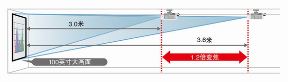 ▲1.2倍變焦。配合屏幕矯正功能,快捷適配投影屏幕。