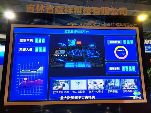 艾比森數據可視化產品CR1.2、舞臺顯示設備產品MiniLED AX1.5在中國(吉林)安全與應急產業博覽會森祥展位現場,超高清顯示、色彩艷麗和細膩的畫面自然而然吸引了眾多觀眾駐足觀看和了解。